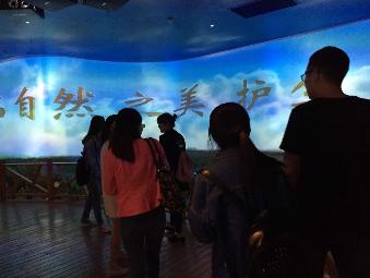 之后,工作人员带领同学们参观了江苏省环境工程重点实验室和江苏省生态环保体验中心。在这里,同学们感受到近几年江苏省环境整治尤其是太湖水治理的新成效,了解到一些基本的水处理、生态修复流程,并通过互动、小实验了解到环保就在我们身边。