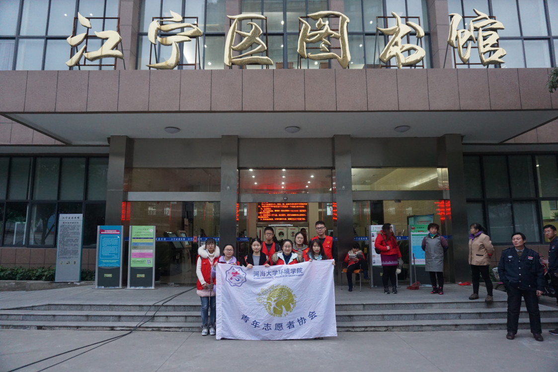 2016年12月18日,为了减轻公共图书馆工作人员工作压力,弘扬志愿服务精神,激发更多的学生参与到志愿服务中,环境院青协的志愿者们再一次来到了江宁图书馆进行志愿服务活动。