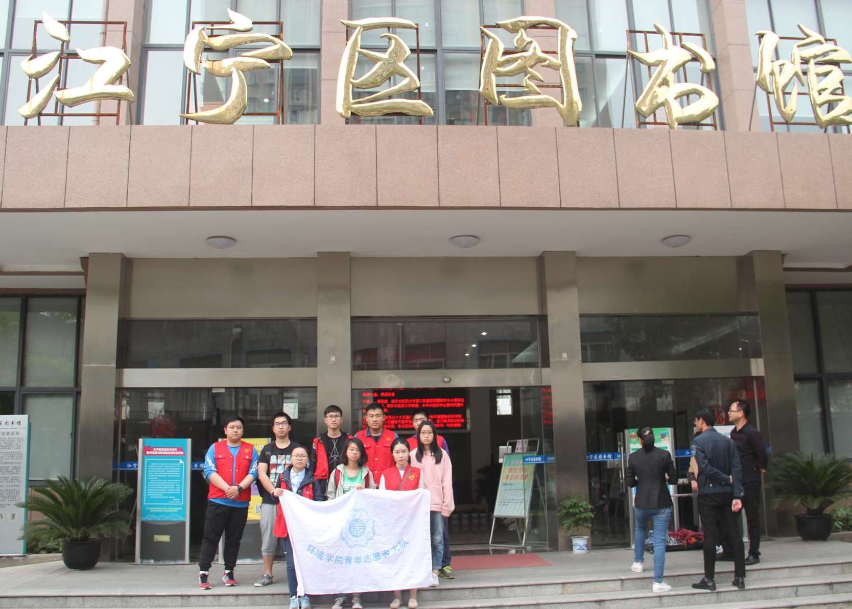2017年4月16日,为减轻图书馆工作人员负担,为市民营造良好的学习读书环境、弘扬传递志愿精神,环境院青协的志愿者们来到江宁图书馆,进行图书整理的志愿活动。