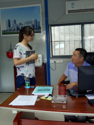 当日上午,全体成员来到南通四建集团公司于8x8x 建设项目的现场并受到了8x8x 项目总负责人于建光于经理的热情接待。在全体佩戴安全帽后团队成员和于经理就此项目进行了热烈讨论并了解到8x8x 项目由于是在先前没有建筑物的基础上进行建造,因此相较于那些将建筑物推掉再建的类型而言,其产生的建筑污染是明显少很多的。小组成员还就建筑废料和噪声问题进行了提问,于 于经理帮组员整理安全帽