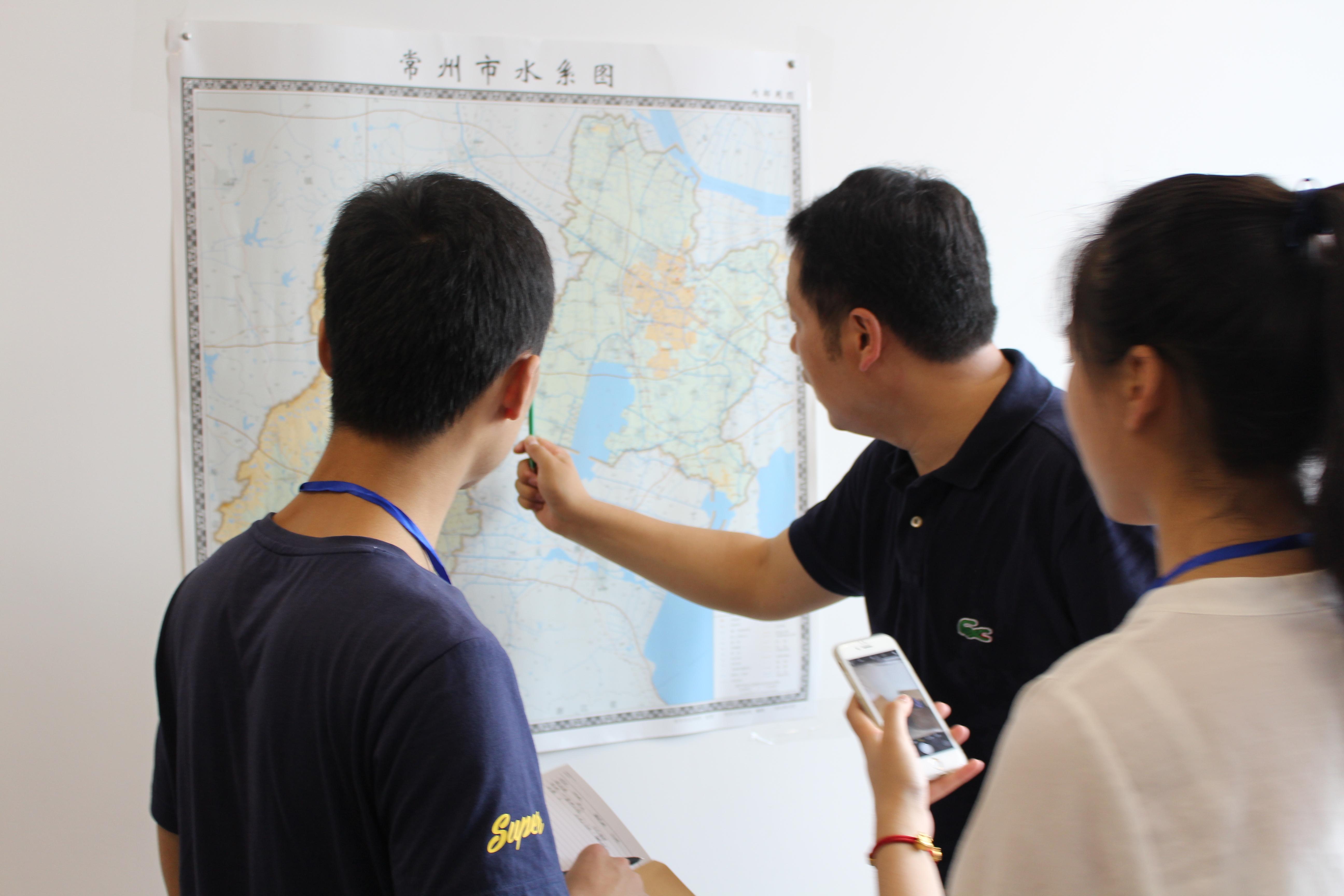 实践活动开展初期,团队采访了金坛市环保局副局长薛金华、水资源研究所张巍所长并从他那里了解到,所谓河长制即每一条河道有一个总责任人,即河长,河长对河流中的所有问题负责。河长会再把责任细化分担给有关部门,责任根据个人团体对河流的影响分担,最终,责任层层细化,再加之定期的考核,使得治污效率显著提升。之后薛局长为我们讲解了“谁污染谁治理”与河长制的内在联系。这些东西为成员填充了基本框架,也为之后的活动打下了坚实的基础。
