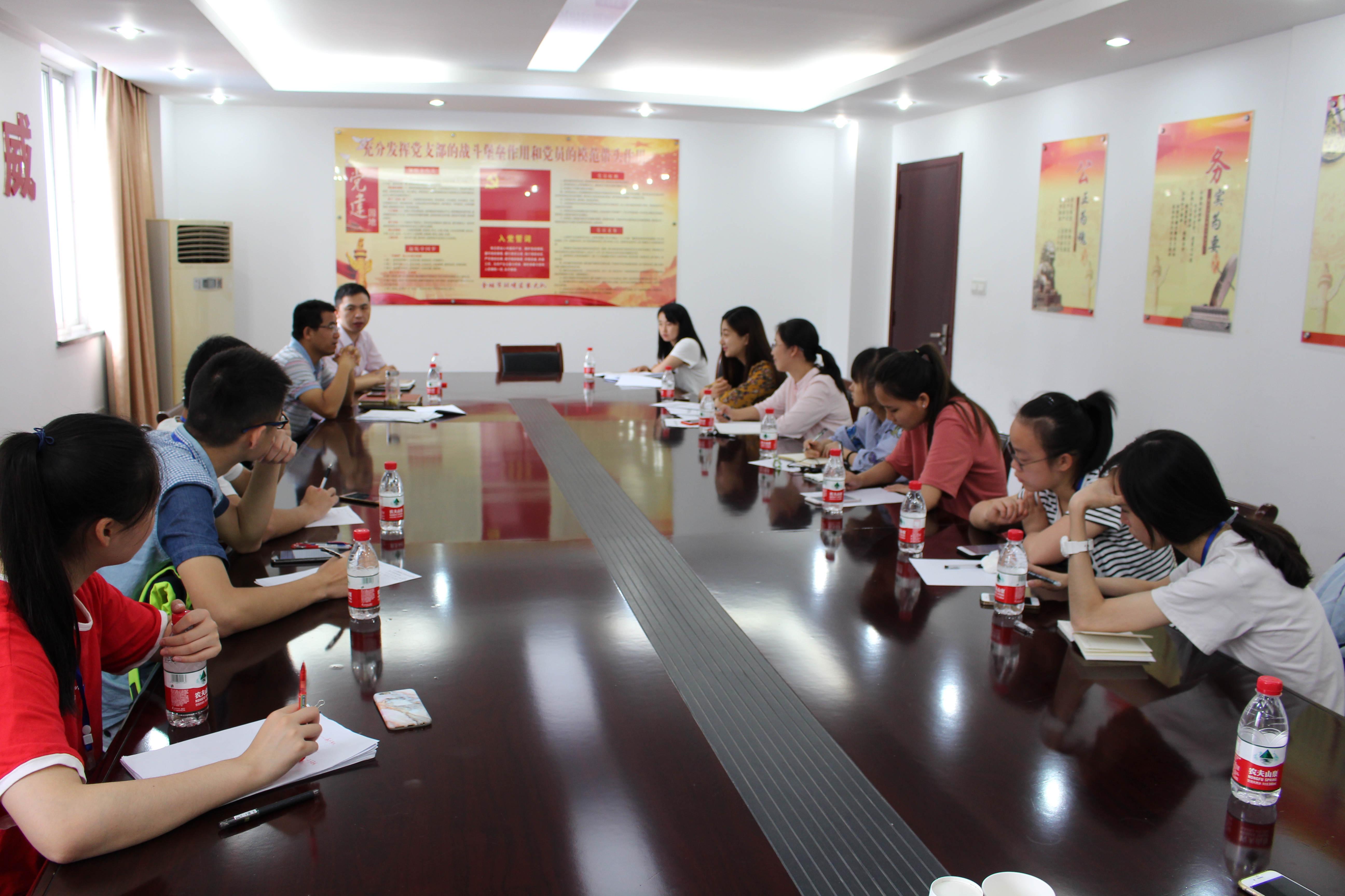 实践过程中,团队举办多次座谈会。邀请水利局和环保局的领导与8x8x 老师进行交流研讨会,团队成员热情参与互动,对河长制的实施与终身问责制的后续保障也有了进一步了解。在与水资源研究所张巍所长的座谈中,张所长所阐述的长荡湖工程建设情况以及进出口河道情况则为进一步了解湖泊水质,寻找污染原因提供了更细致的材料。