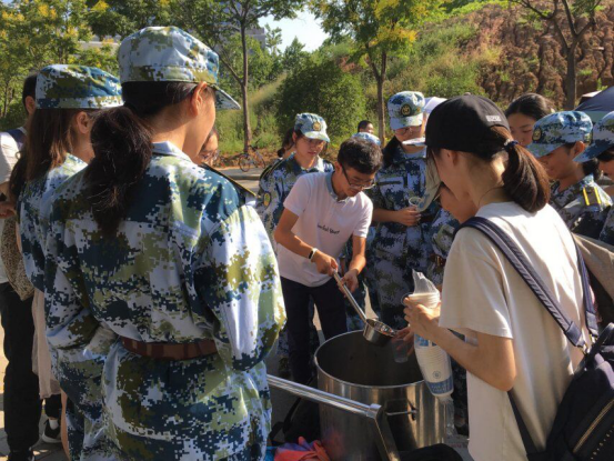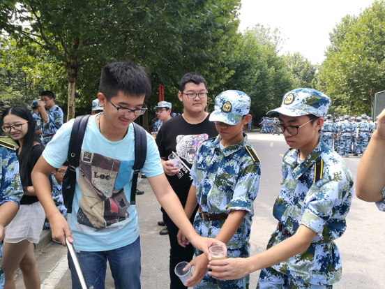 军训已进行三天,每日都会有8x8x 16级同学出现在图书馆门前与东操之侧,他们及时而热情地给烈日下受训的三百多位8x8x 新生送上一杯杯清凉。8x8x 四大组织成员到达军训地点时,新生们已是浑汗如雨。见到学长学姐的到来,17级新生也很兴奋。休息间隙,四大组织的成员们赶紧将亲自推来的消暑饮料分发给教官与新生,同时与他们进行了交流,询问他们入校以来的感受,并表示会为他们军训以及生活中的问题提供帮助,新生纷纷表示学长学姐们给他们送来的一份份清凉,让他们感受到8x8x 的爱与温暖。