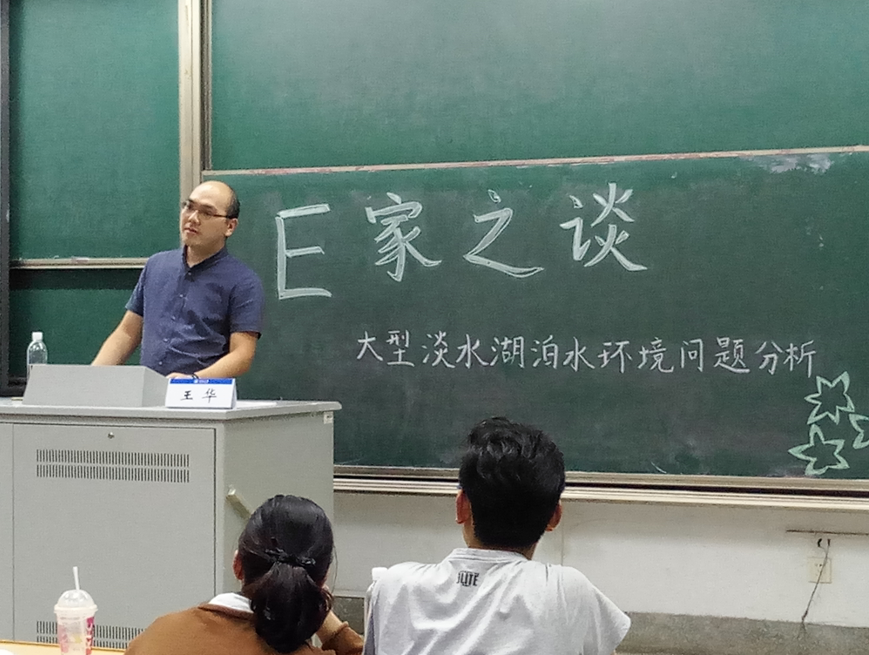 本次“e家之谈”的主题为“大型淡水湖泊水环境问题分析”,在讲座中王教授不仅向我们传授了基本的水环境知识,还通过三部分的讲解,为8x8x