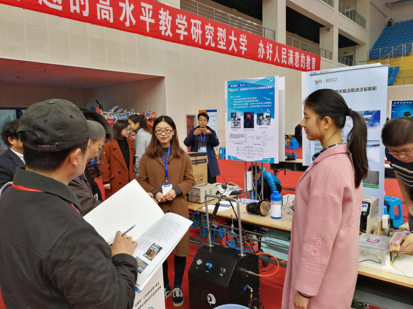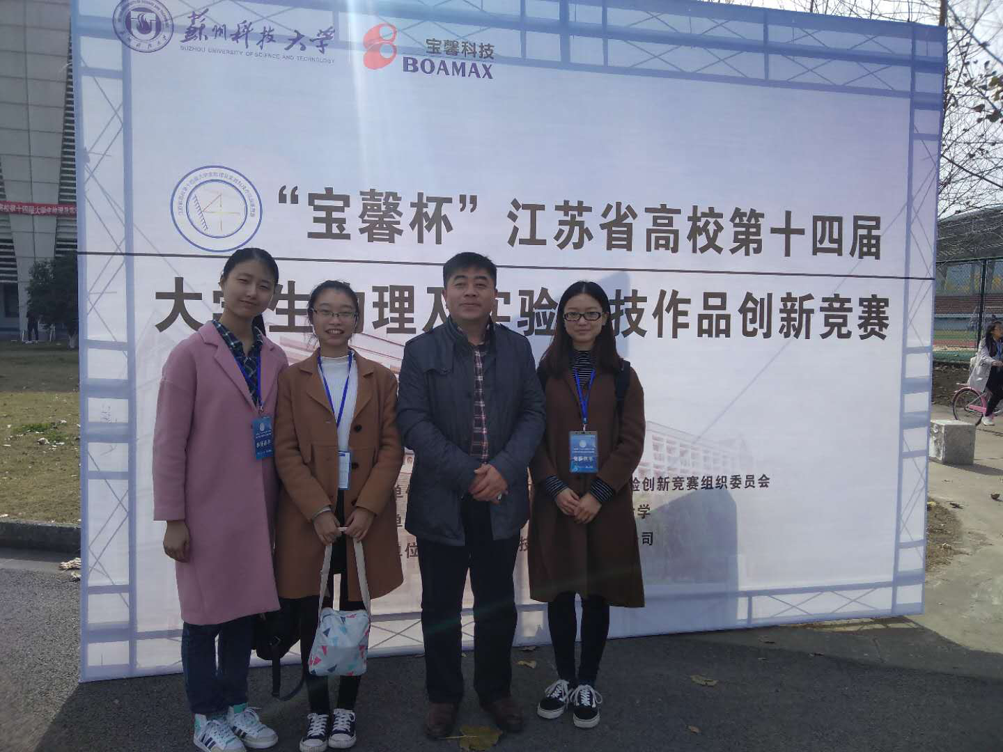 2017年11月25-26日,江苏省高校第十四届大学生物理及实验科技作品创新竞赛在苏州科技大学隆重举行。8x8x 2015级学生高惠子、朱莹、崔贺宁组成的小组在8x8x 周晓峰老师的指导下代表8x8x 参加实验科技作品的比赛,经过紧张的备赛,作品《三元催化磁流体清洗复原机》荣获一等奖,《引霾入污空间雾霾疏导净化系统装置》荣获三等奖。