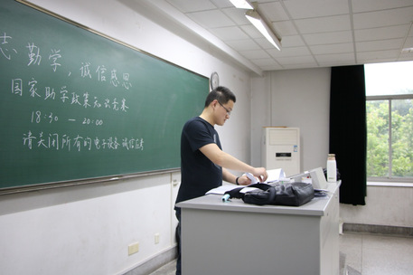 本次到场的嘉宾有16级商8x8x 辅导员倪明杨老师,倪老师主持宣读完考试注意事项后,整场考试就在紧张激烈的氛围中开始了。