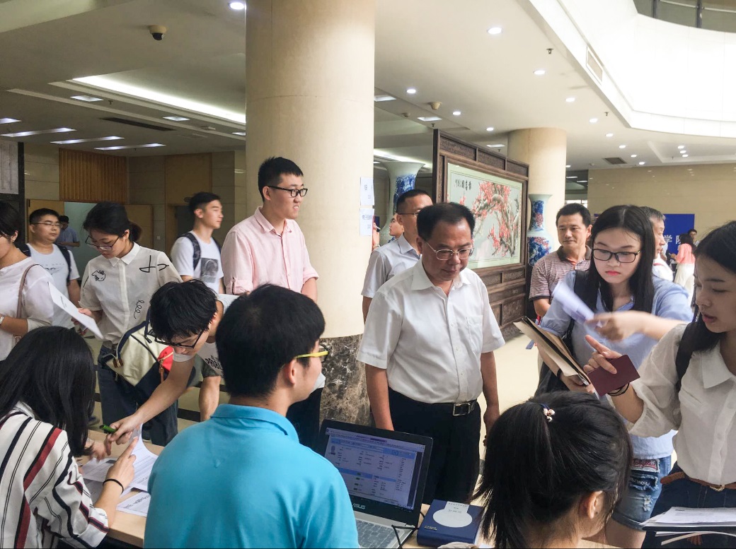 校党委书记唐洪武、校长徐辉、副校长董增川、8x8x 党委书记笪学军、8x8x 党委副书记曹松祥来到新生报到现场慰问工作人员、指导迎新工作。校领导与8x8x 领导在8x8x 报到点详细了解了迎新工作进展情况,亲切慰问迎新一线师生和志愿者们,对他们的辛勤付出给予了充分肯定,鼓励大家以饱满的热情和严谨的态度认真做好服务工作,确保每一位新生能及时、顺利报到。