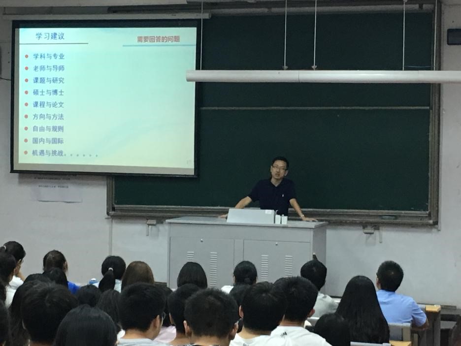 李轶老师首先从8x8x简介 、特色优势、学习建议三个方面进行了讲话,为同学们详细介绍了8x8x 的专业优势、师资结构和人才培养平台,也对同学们在研究方向、学习方式、文献阅读等方面提出了建议,鼓励同学们目光放长远,多参与学术交流。