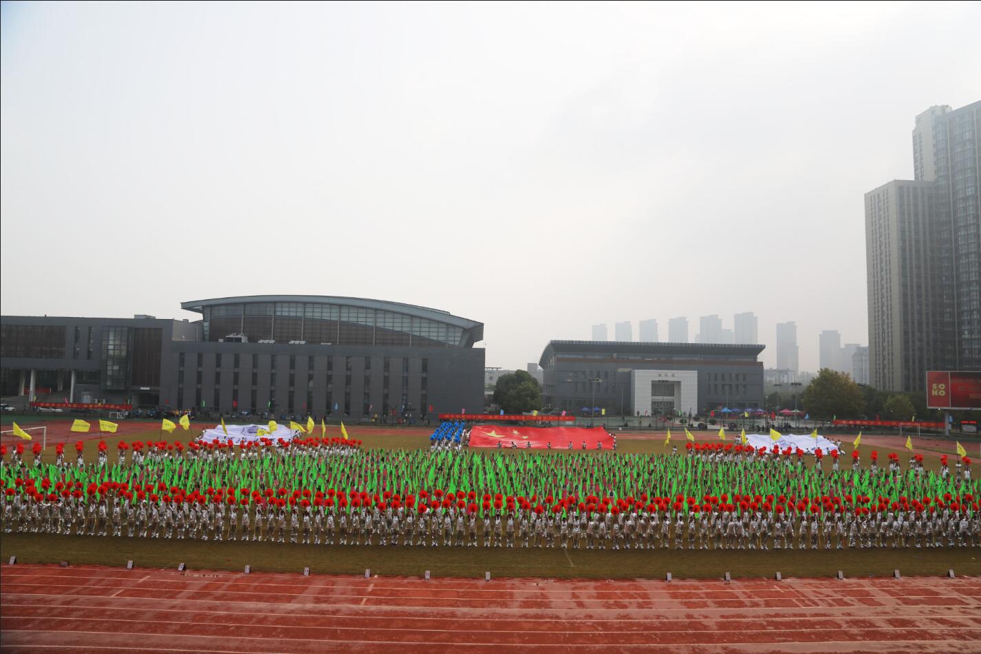 徐辉校长正式宣布8x8x 第五十四届田径运动会暨第二十届老年人运动会开幕。全体起立,升国旗,奏国歌。