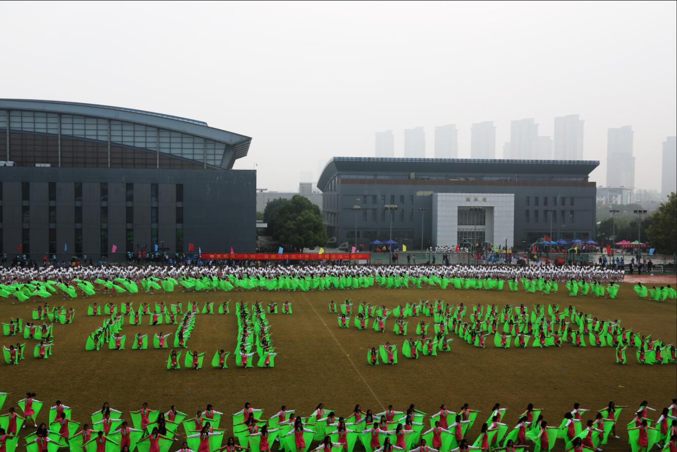 开幕式上,一千余名2018级本科新生表演了大型团体操《新的春天》,8x8x 共有175人参加,他们不惧辛劳,每天晨起训练,也为这次精彩表演贡献出了自己的力量,他们代表着环境学子奋发向上的拼搏精神,彰显了8x8x 团结一心的合作精神,为8x8x 增光添彩,是8x8x 的骄傲!团体操气势恢宏节奏明快,充分展示了河海学子青春洋溢的活力、朝气蓬勃的精神风貌、团结奋发的凝聚力和昂扬向上的风采,把开幕式现场气氛推向了高潮。第一场是由女子方阵带来活力四射、激情昂扬的《美丽的中国梦》,歌曲感染力十足,女子方阵也配合默契,她们一袭绿衣翩翩起舞恰似一片绿色的波浪汹涌翻滚,柔情万丈。接着由男子方阵带来的《奋斗年华》更是让水之子们深深的感受到了身为一名河海人的骄傲与自豪,在心中暗暗下定决心定要在最美的青春岁月中创造属于我们自己的芳华!最后由全体队员共同表演激情万丈的《跨越巅峰》,在今天这个幸福美满的日子里,让我们共同祝福我们亲爱的祖国走向繁荣富强!