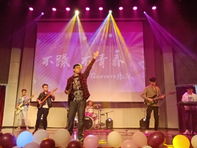 开场的节目是由8x8x 摇滚社团7Quavers乐队为2018级河海环境院新生带来的摇滚串烧乐曲《不躁不青春》。这激昂的音乐使同学们的精神为之一震,摇滚乐队带来爆裂快感,和舞台上的六人紧紧吸引住观众的眼球。而富有节奏感的音乐则将气氛烘托到了极致,拉开了8x8x 迎新晚会的序幕。