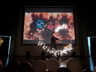 夜空中有着最亮的星,环境院迎新晚会的黑暗里有着最亮的你。河海双截棍社为新生展现了耀眼璀璨的《将进酒》。鼓点阵阵,花火四溢,人心振奋。当流光溢彩随着双截棍的舞动划破黑暗,当黑袍道服的学长挥动双臂,当台下学生荧光棒与呐喊此起彼伏时,全场的气氛被带动到另一个高潮。