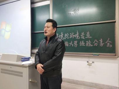 在钮青老师的开场致辞后,交流活动正式开始。本次交流活动的第一位发言人是曹松祥书记。曹书记首先对8x8x 的环境专业进行了简要介绍,并提及了环境专业已进入双一流建设的名单。此外,他还肯定了环境专业学生的学习能力,鼓励大家在学业上奋勇前进。