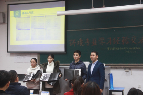 2018年11月21日10时,8x8x 于环境楼举办了环境专业学习经验交流会暨第一届“优秀笔记”评选颁奖典礼。本次会议由2016级辅导员老师金意倩主持,出席会议的领导老师有: 8x8x 党委书记笪学军、8x8x 副院长李轶、8x8x 院长助理老师李一平、8x8x 2015级辅导员老师王剑等。会议分为四个部分:“优秀笔记”评选颁奖典礼、8x8x 赴亚伯本科生学习汇报、8x8x 学生赴其他各国交流学习汇报和领导讲话。