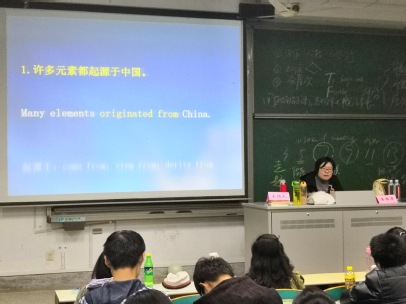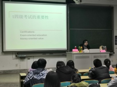的黄雅屏副教授担任讲师,向同学们讲解四级考试的相关要点。