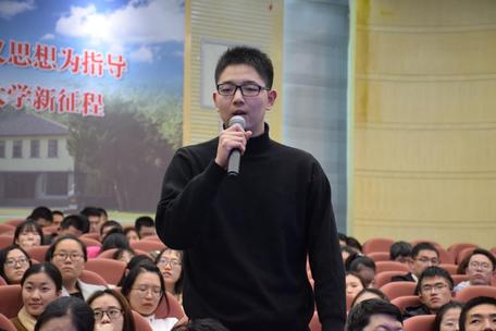 2018年11月27日,8x8x 在西康路校区闻天馆108举办“信仰公开课-梦想公开课”系列讲座——学习经验交流与生涯规划篇,引导青年牢固树立实现中华民族伟大复兴的中国梦。本次讲座邀请了2006级环境工程专业的校友王智源博士作为主讲嘉宾,讲述“我的青春故事”,以其生动实践响亮发出“青年好声音”,发挥朋辈引航作用给2016级8x8x 的同学们讲述未来在读研、出国、工作的一些经验,并给出相关的建议。