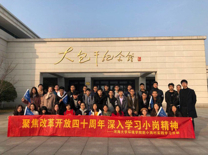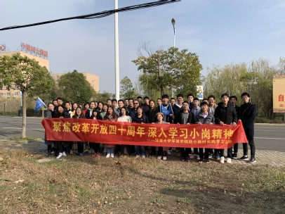 为深入学习贯彻习近平新时代中国特色社会主义思想和党的十九大精神,以马克思主义中国化的最新成果武装广大青年,提高青年学生的思想政治素质,坚定理想信念,立足中华优秀传统文化,促进学生综合素质提升,深入体会改革开放对日常生活衣食住行的影响,感受人们生活的变迁。2018年11月24日,在开展《传奇中国:从小岗村到“地球村”-改革开放四十年启示录》的读书月活动后,8x8x 2017级三十七名本科生同学来到中国改革第一村——小岗村,展开了为期两天的实践活动。作为拉开改革开放序幕的地方,被誉为中国十大名村之一的小岗村,蕴含着很多同学们探索和学习的地方。