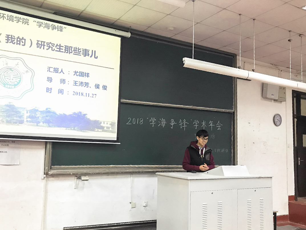 2018年11月27日下午,由8x8x 研会研科协策划并举办的“学海争锋学术年会——博士专场”学术研讨会在水利馆B101教室举行。本次讲座的两位主讲分别是环境科学与工程的尤国祥和张弛,他们在学术研究均有颇丰的成果与经验。