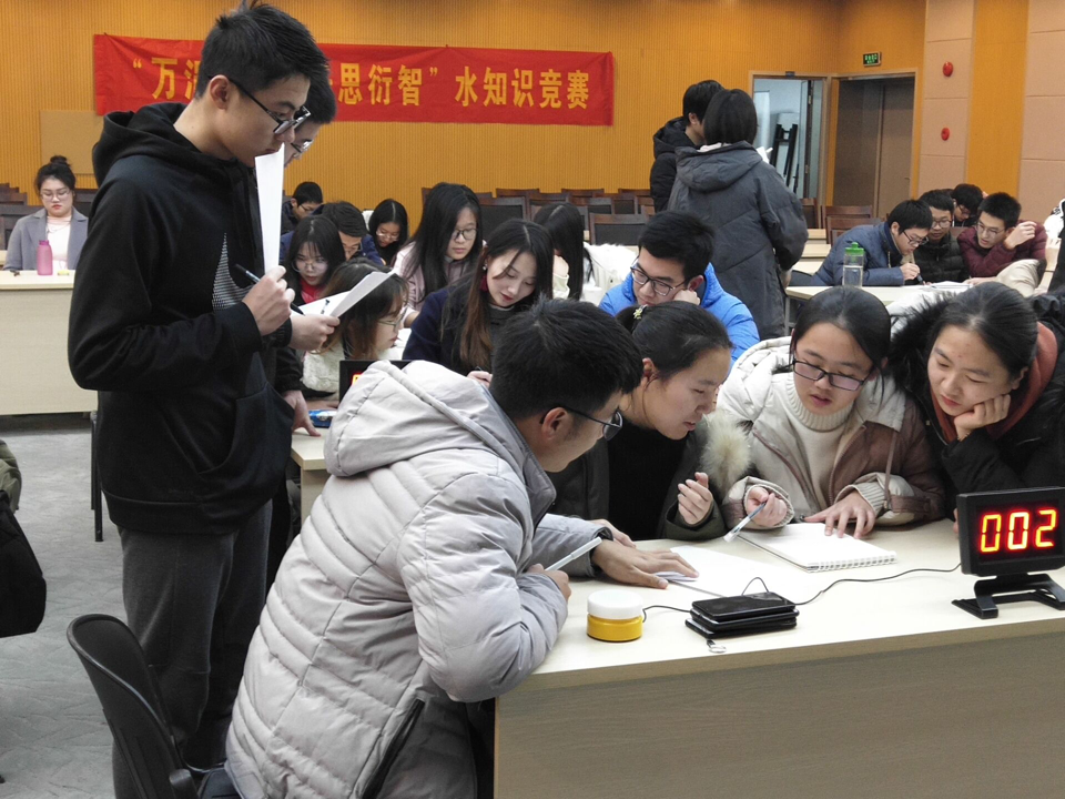 2018年12月16日晚6点30分,第三届“万涓成水,千思衍智”水知识竞赛在图书馆会议室举办。来自8x8x 、大禹8x8x 、水文水资源8x8x 等10个8x8x 的共50位同学参与了此次水知识竞赛。