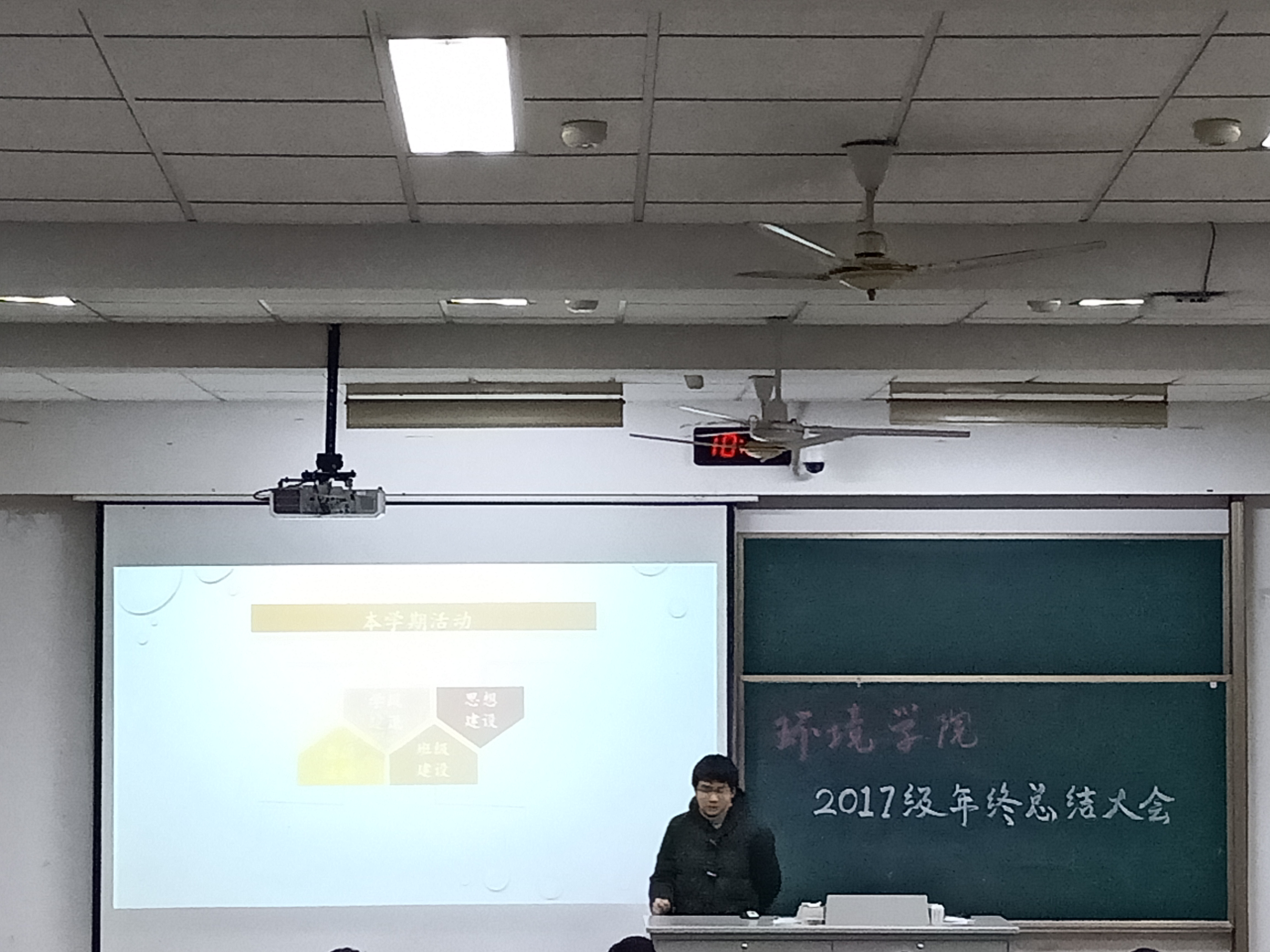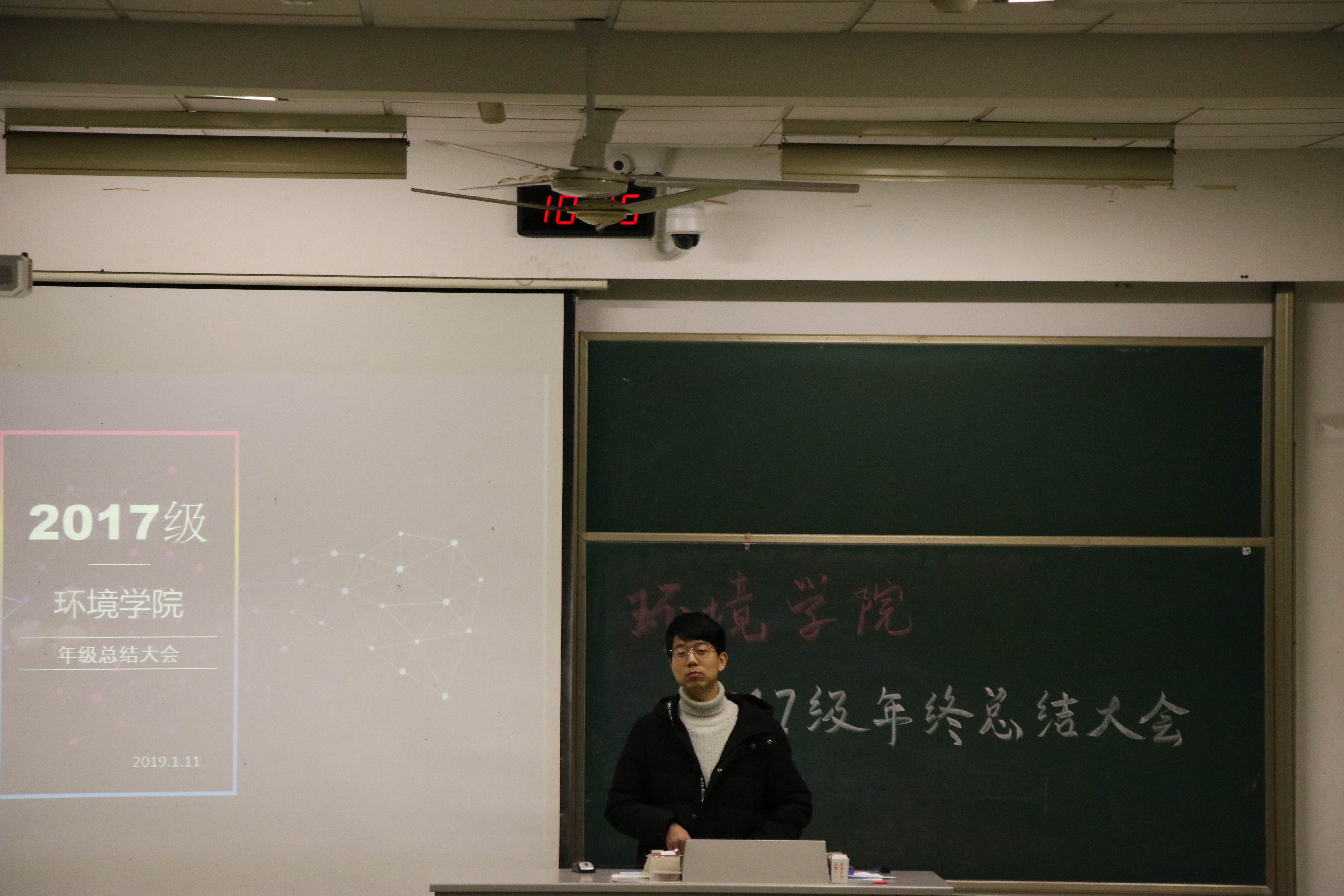 2019年1月11日星期五8x8x 17级学生于致高B111教室进行本年度年级总结大会。大会旨在各班总结一个学期的得失,对未来展望,以得到更好的发展。