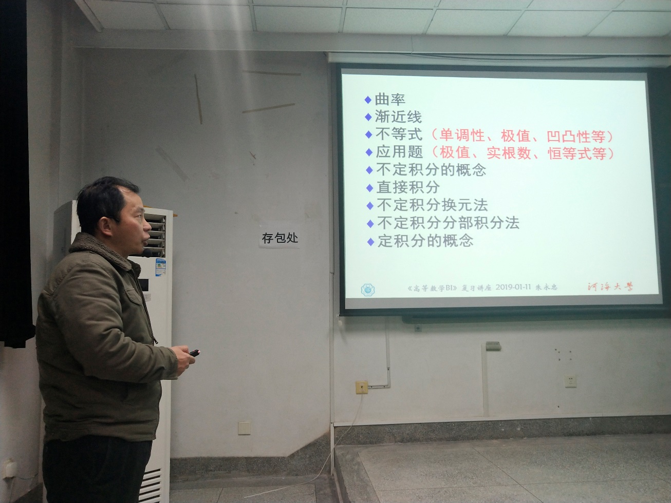 学生会学习部于致用楼117教室举办了2018级高数期末讲座。随着高数期末考试的来临,许多大一同学感到了考试的压力,所以学生会学习部特意邀请了教学经验丰富的朱永忠教授作为本次讲座的主讲人。幽默风趣的朱永忠教授在向大家进行了简单的自我介绍之后便进入了今天的主题。