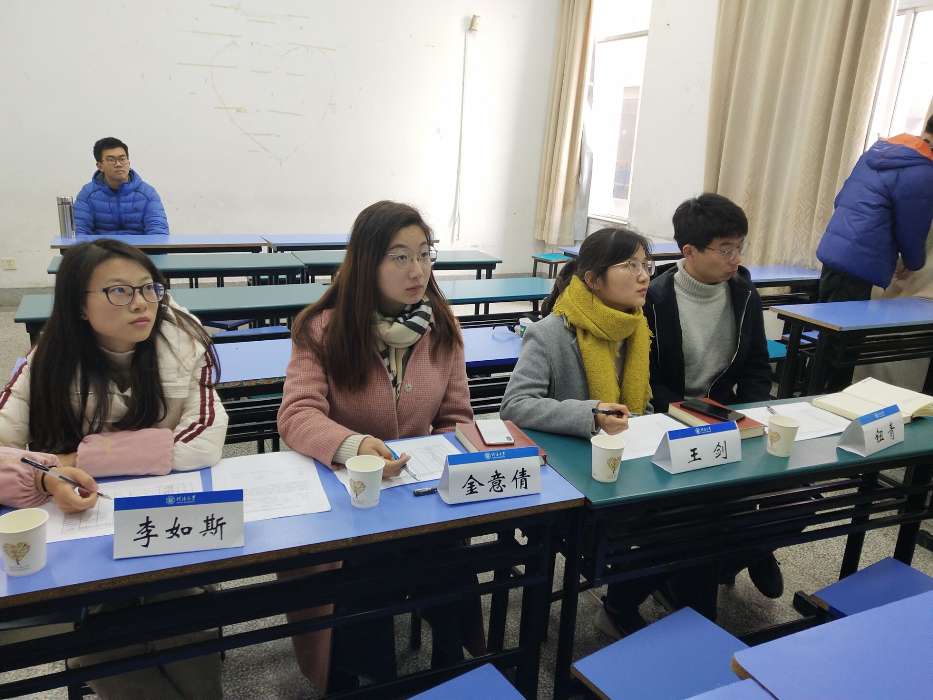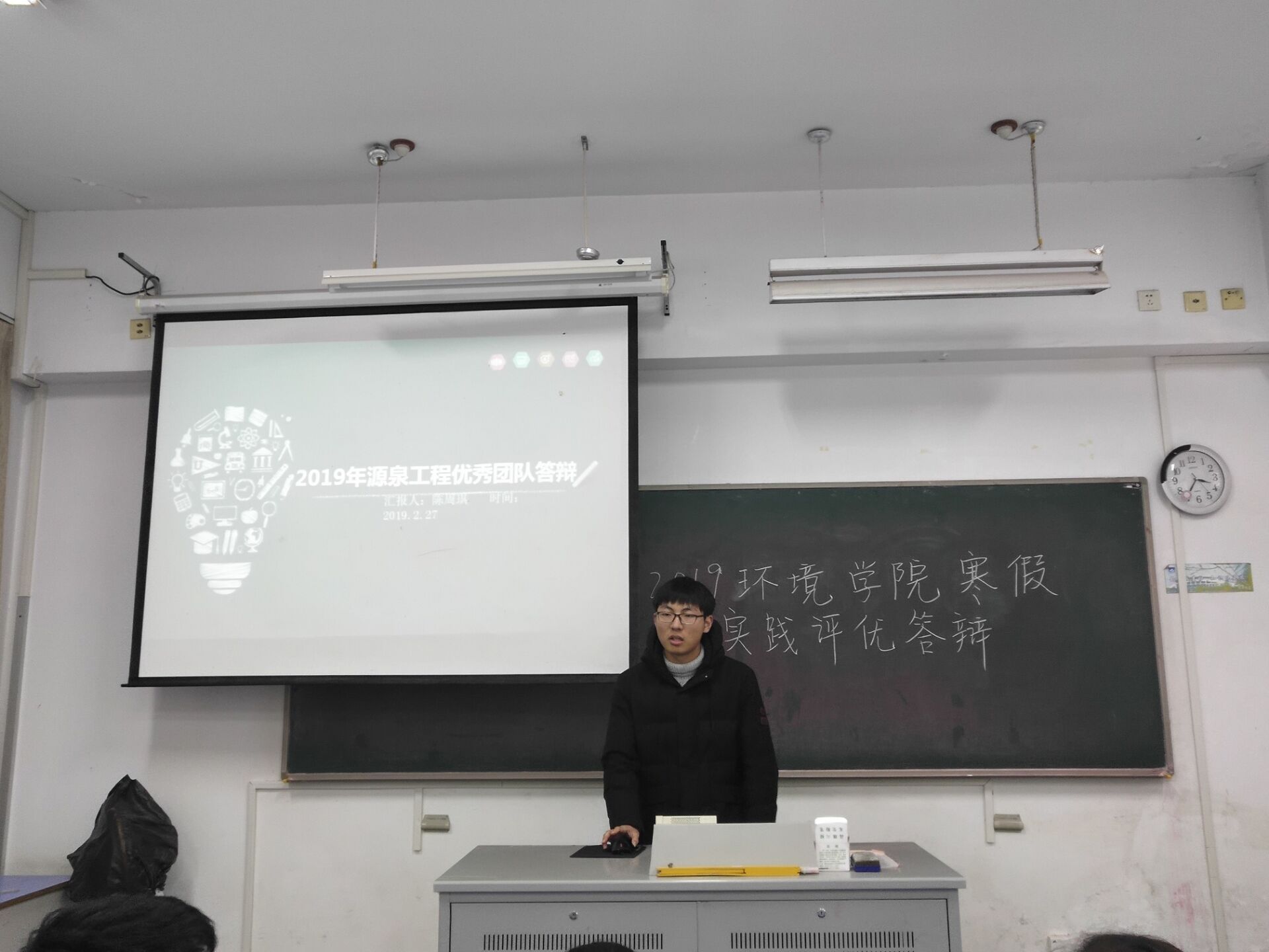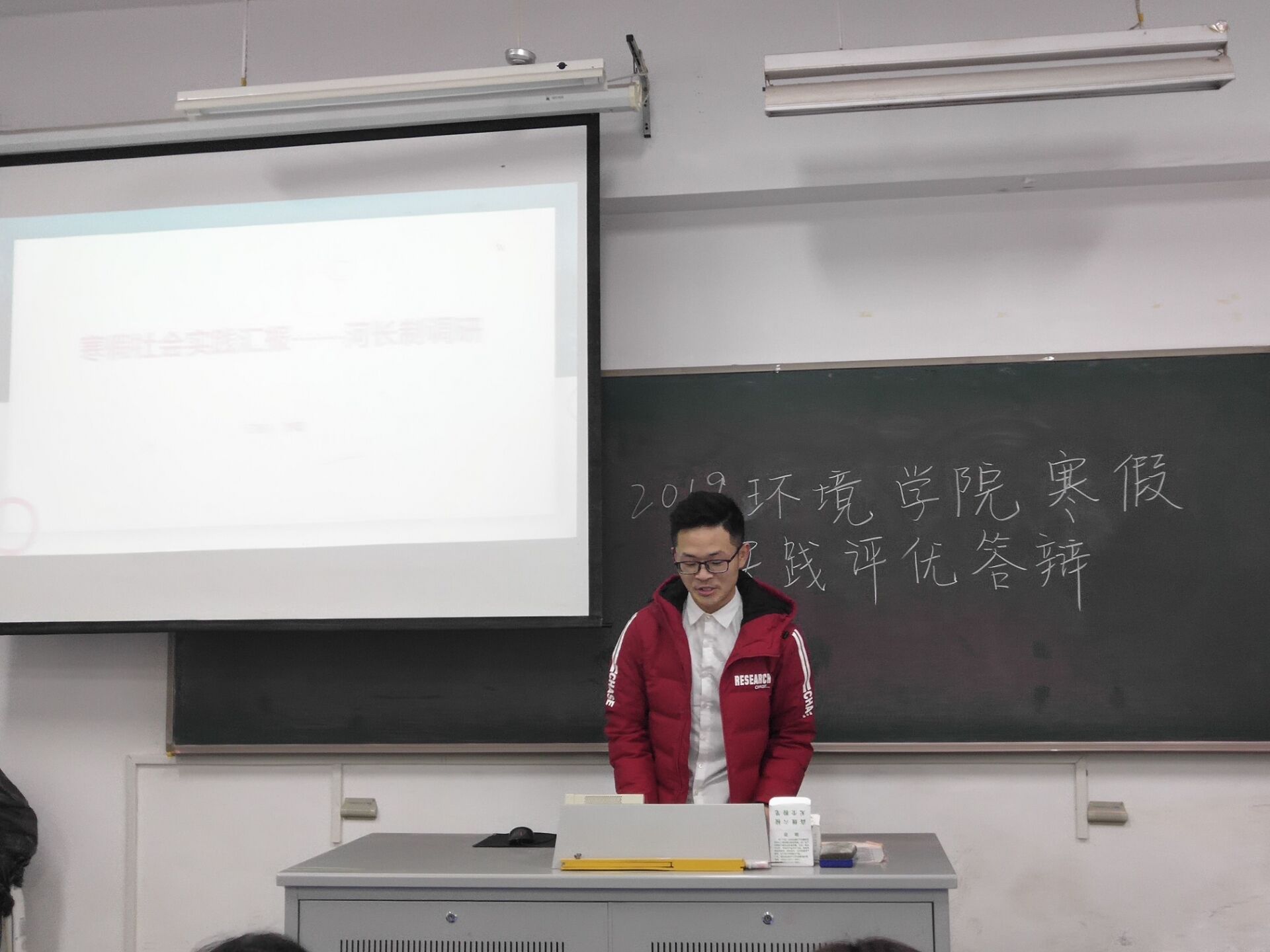 下午两点整,答辩会正式开始。参与本次答辩的同学们在寒假中分别围绕河长制、感念师恩、专业实习、社会活动等主题展开了实践。