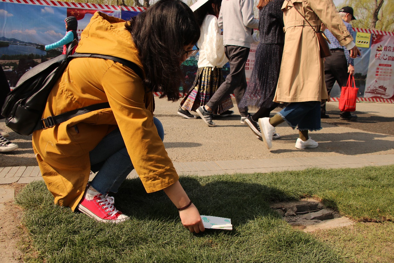 志愿者们从水资源利用、废水处理、国家治理水资源等方面对游客进行问卷调查,也同时向普通群众传播护水知识。