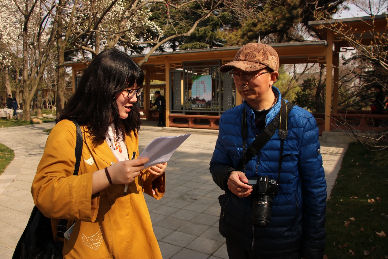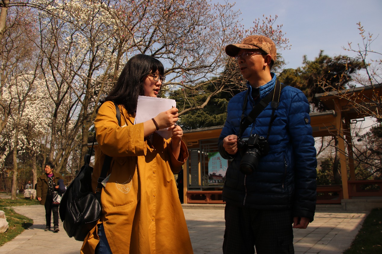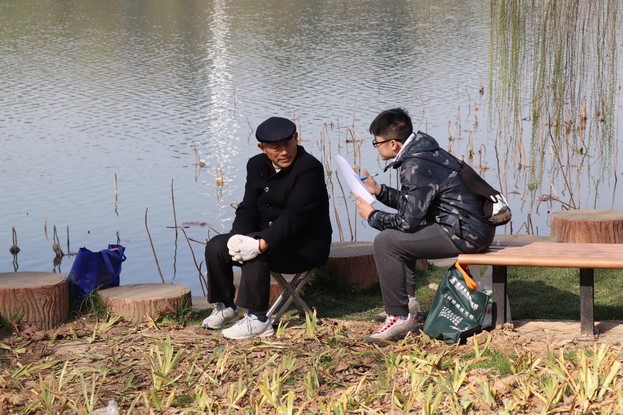 参与玄武湖志愿活动的成员共有21位。上午玄武湖各小组成员到齐,组长给各组员分配好任务后,组员们开始了问卷调查。