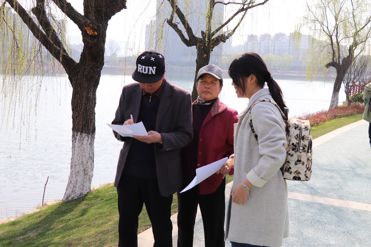 周六早晨的公园里大多数都是晨练的老人,虽然一些老人不识字,不能读懂调查问卷,但是志愿者们总是耐心地为他们解读。经过调查不难发现,大多数老人都有节约用水和一水多用的良好习惯,同时他们还要求儿女们也养成节水的好习惯。在调查过程中,一位老奶奶还向志愿者们分享起了自己家的节水妙招,例如淘米水浇花、洗菜水冲马桶等,赢得了志愿者们的阵阵好评。
