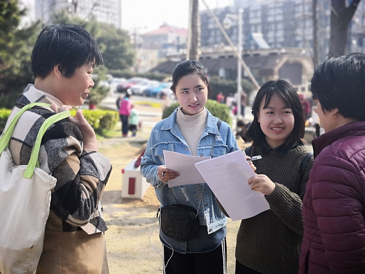 活动过程中难免遇到挫折,即使被拒绝了多次,志愿者们依旧用笑脸面对下一个过路人。也有许多热心的人主动向志愿者们询问并填写调查问卷。