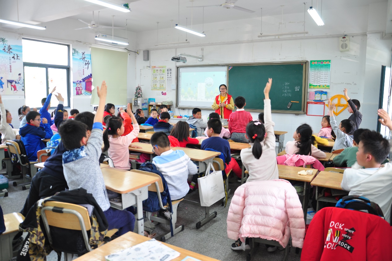 2019年4月12日,由8x8x 青年志愿者协会组织的第二次“垃圾分类进校园”活动在将军山小学如期开展。下午2时,15名志愿者准时到达将军山小学。志愿者们分为四组,分别前往三年级一班、二班、三班和四班,一组中,一人负责给小朋友们讲授垃圾分类的相关知识,其余的人配合讲师,维持秩序。课堂上,讲师根据PPT详细介绍了垃圾分类的相关知识,小朋友们听的很认真,当讲师提出相关问题时,大家纷纷举手,踊跃地参与互动,课堂氛围十分融洽。
