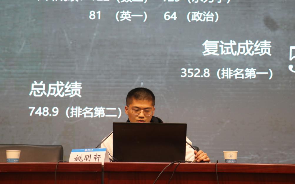之后,大会进入下一个流程,即学长学姐考研经验分享。姚明轩、邵国毅、陈佳佩、曹晨昀、韩玉学长学姐依次就考研的数学、英语、政治、专业课各科复习方式、书籍和时间规划展开了细致分享,各位学长学姐真诚地分享了自己考研过程中的经验和一些问题,作为过来人为大家答疑解惑,让大家少走许多弯路。