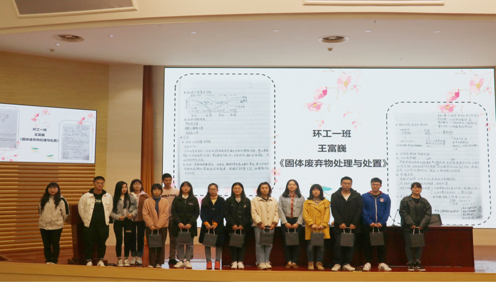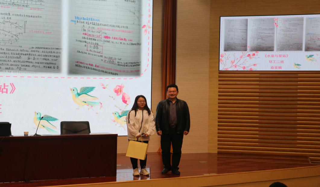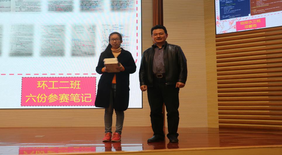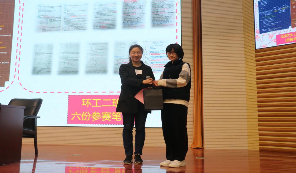 之后,大会进程进入第二部分,进行了第二届学霸笔记颁奖典礼,学霸笔记评比是综合专业老师意见、社交平台投票、学生意见评选出来的。在金老师的主持下,由曹书记和各位学长学姐给优秀笔记获奖者颁发了奖品并进行合影留念。该评选活动意在鼓励大家加强自身专业学习,创建优良学风。