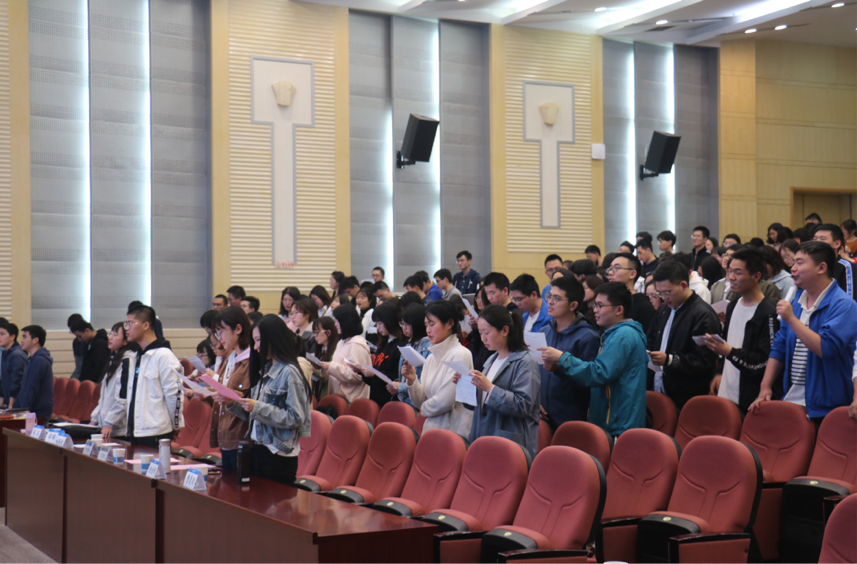 最后,大会进入最后流程,2016级全体学生进行宣誓倡议。努力课堂学习做到“三不一争取”,课堂不玩手机,不吃东西,不迟到早退,争取坐前排提高效率。同学们的集体宣誓铿锵有力,掷地有声,相信同学们一定会坚定信念,努力做到“三不一争取”,创建更加优良的学风。