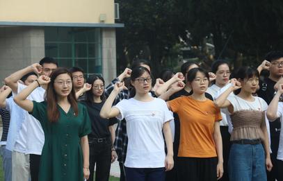 最后便是国旗下党员宣誓环节。由15级党员潘泓哲领誓,全体党员宣誓。大家右手抱拳,严肃地举起右手过肩。“我志愿加入中国共产党,拥护党的纲领,遵守党的章程,履行党员义务,执行党的决定,严守党的纪律,保守党的秘密,对党忠诚,积极工作,为奋斗终身,随时准备为党和人民牺牲一切,永不叛党。”誓词铿锵有力、鼓舞人心,大家对祖国的热爱、对共产党的敬仰更进一分,誓将为祖国建设为共产主义建设奋斗终生。