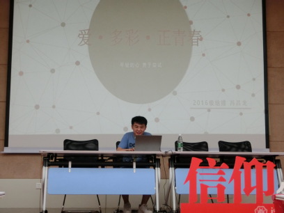 片刻休息后,十杰百佳成长故事交流分享会正式开始了。本次心灵交流会邀请到了8x8x 15级辅导员王剑以及八位8x8x 十杰百佳的优秀同学们。他们将围绕爱这一主题给台下的同学们分享他们动人的成长故事。