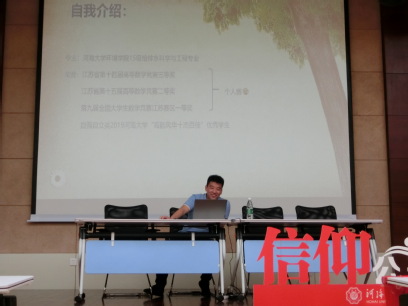 第四位是评为自强自立类十杰百佳的高志鹏同学。他以诙谐的语言讲述了他在面对多项工作时的心路历程并感谢了期间导员给他提供的帮助,鼓励学生们积极与老师交流沟通。