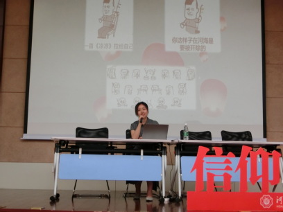 最后是2018年获得“海韵风华”称号的李鼎新同学。她向学生们讲述了她大学经历的温暖故事,也特别提到了舍友之间应坦诚相待,营造良好的宿舍关系。