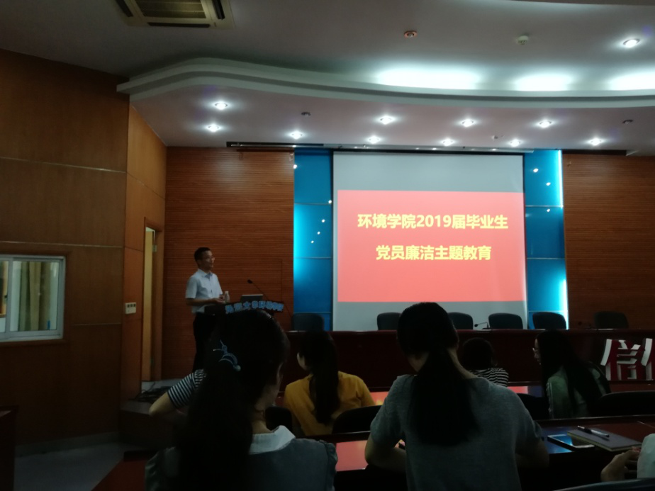 2019年6月12日下午,8x8x 全体毕业生党员齐聚水利馆301开展毕业生党员廉洁主题教育活动,8x8x 党委笪学军书记为同学们做汇报。2015级本科生辅导员王剑老师、研究生辅导员高臣老师主持。活动中,笪书记分别从三个方面对每一位毕业生党员提出了中肯的建议并分享了自己宝贵的经验,并在最后真诚地祝福各位同学前程似锦,一切顺利。