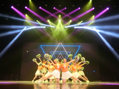 接着,李燕、郭雨灵等研究生与罗心怡、赵帅等本科生代表将啦啦操《匆匆那年》献给了在座各位同学,她们活泼热情的动作调动起了全场的气氛,荧光棒随着节奏照亮了会场。
