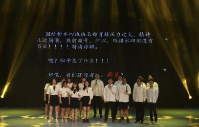 而在给排水2班的情景剧《肥宅勿扰》中,几位美丽动人的小姐姐和灵活可爱的小哥哥逗得全场笑声不断。