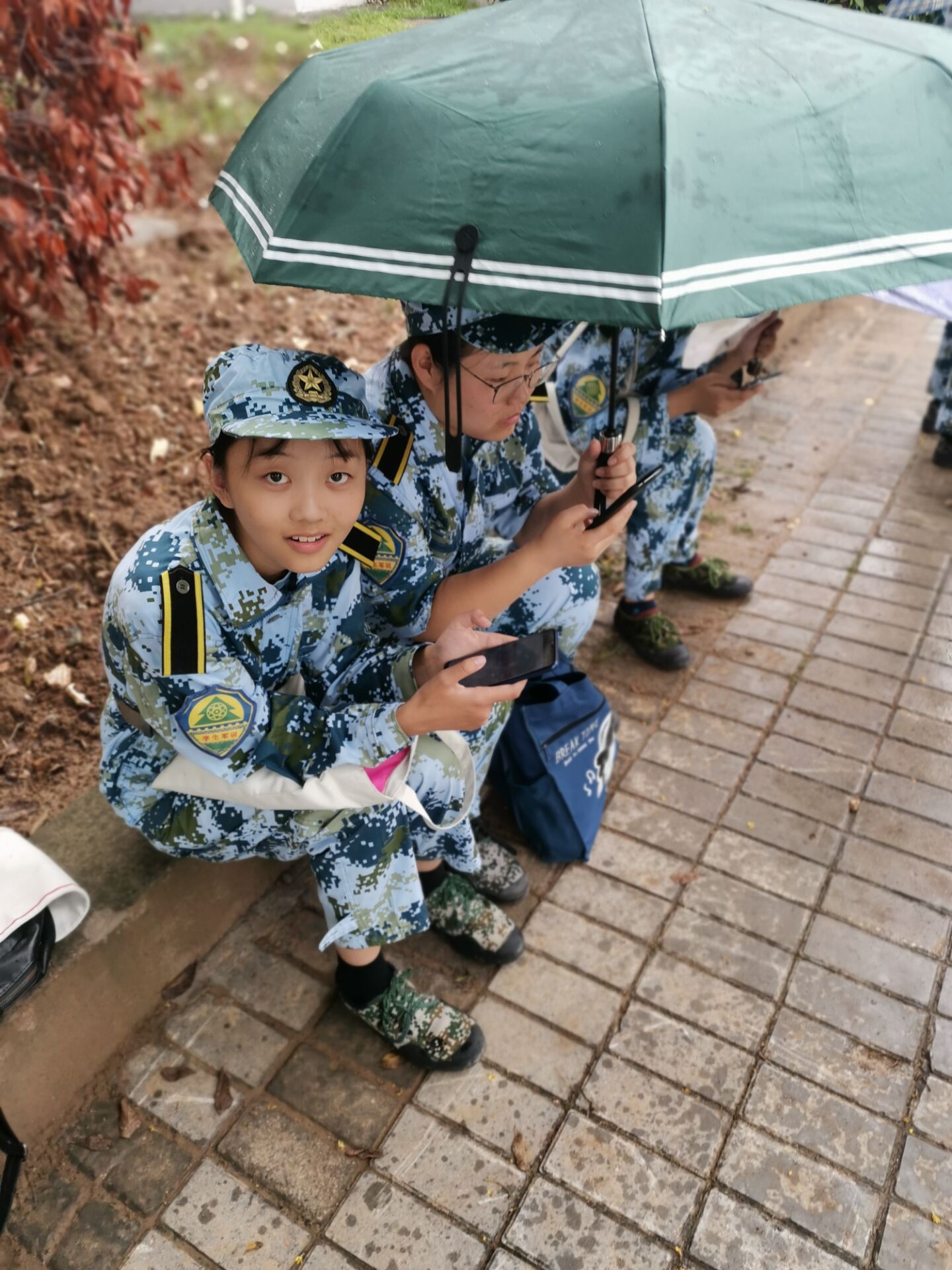 不过,虽然气温是下降了,但我们仍然要面临不一样的困难--雨中军训。军姿,起步,正步,跑步,一组练习下来,帽子里是汗水,帽子外是雨水,但我们最终坚持了下来。蓝军装,绿军鞋,斜风细雨不须归。条件虽然艰苦,但这不正是军训的意义吗?军训带给了我们身体的磨炼,更锻炼了我们的意志。军训教会了我如何做人,做怎样的人,更让我学会了与人的交流沟通,体会他人的内心感想。
