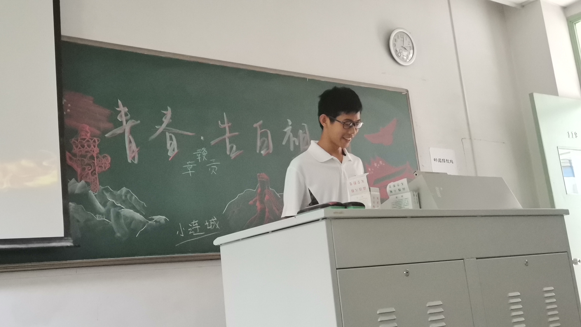在常晓寒同学和李轹蔚同学设计的板报衬托下,班会中,张宇超首先做出了破冰周的总结,一张张盈满回忆的照片代表着我们过去一周里的欢笑与友谊。