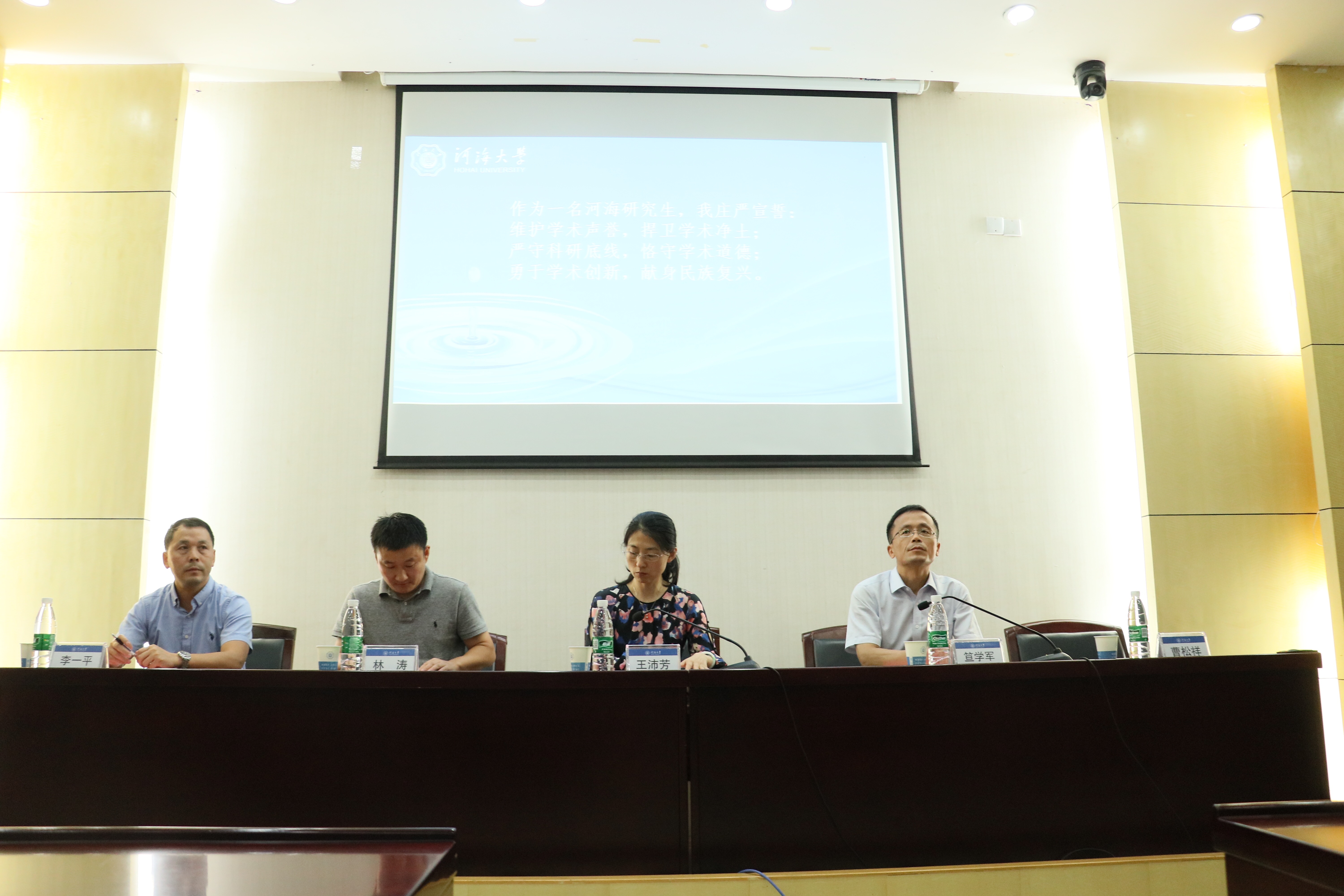 2019级环境科学与工程硕士研究生侯思雨作为新生代表发言。她呼吁同学们求真学问,练真本领,肩负起水之子“毋负邦人期”的重担,用环境人敢为人先、迎难而上、实事求是的精神为8x8x 双一流建设贡献自己的力量。实验中心主任孙敏副教授开展以“安全开展科研实验”为主题的实验室管理教育。她向同学们详细介绍了实验室安全规范,特别强调了违反规范的处罚措施。教学秘书张文翠老师讲解了信息完善、选课事宜、培养流程等方面的细节。辅导员罗荣荣老师说明了与同学们息息相关的奖助学金、校园安全、班干设置等问题。