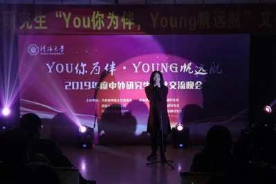 中外研究生手牵手,展现青春华彩;世界友谊心连心,共谱盛世赞歌。12月3日晚,2019年度“You你为伴,Young帆远航”中外研究生文化交流晚会圆满结束。本次活动旨在丰富学生校园生活,为在校研究生以及留学生提供展示自我才华、个人魅力的舞台,加强彼此之间的交流,营造温馨校园环境。