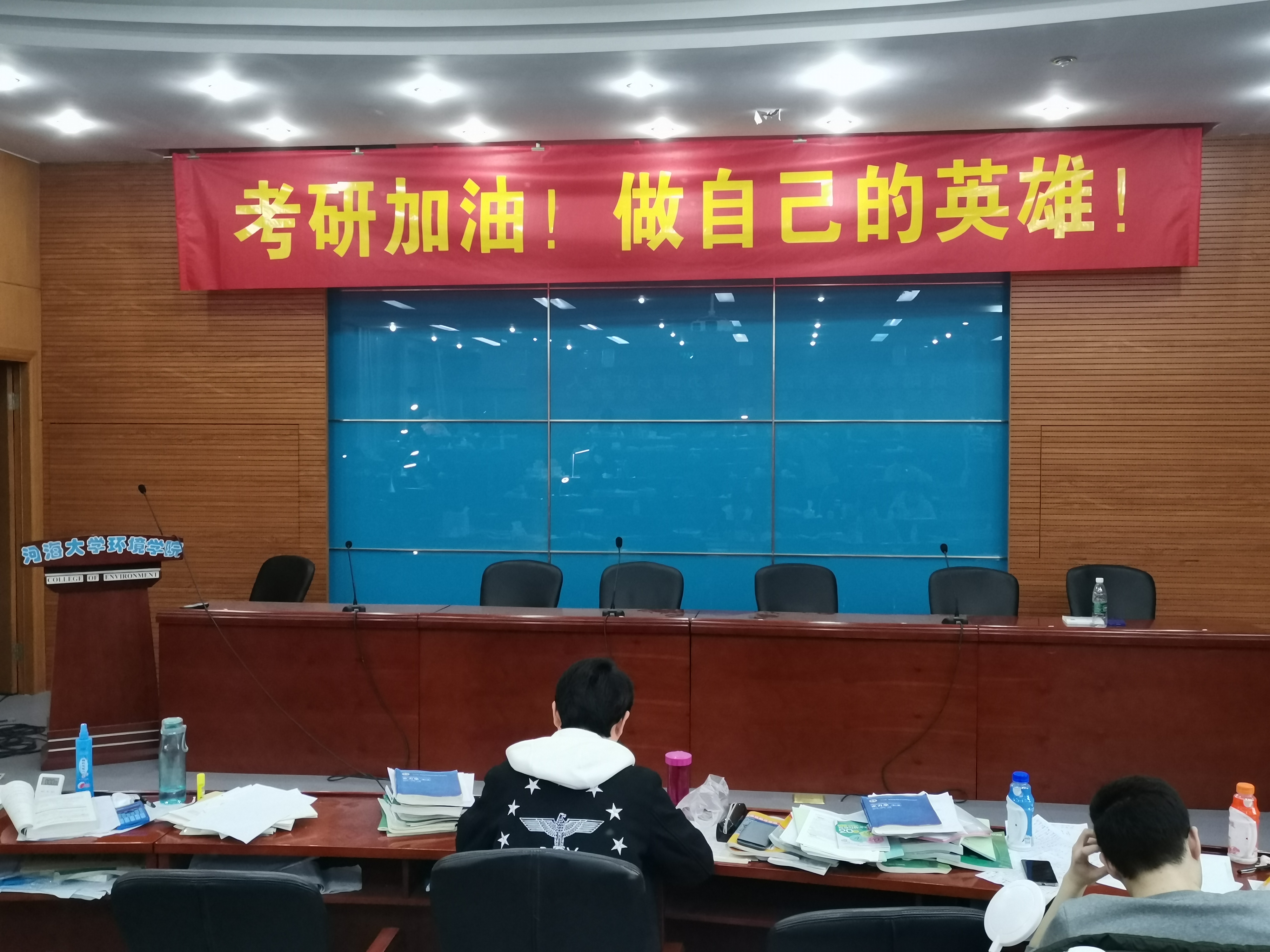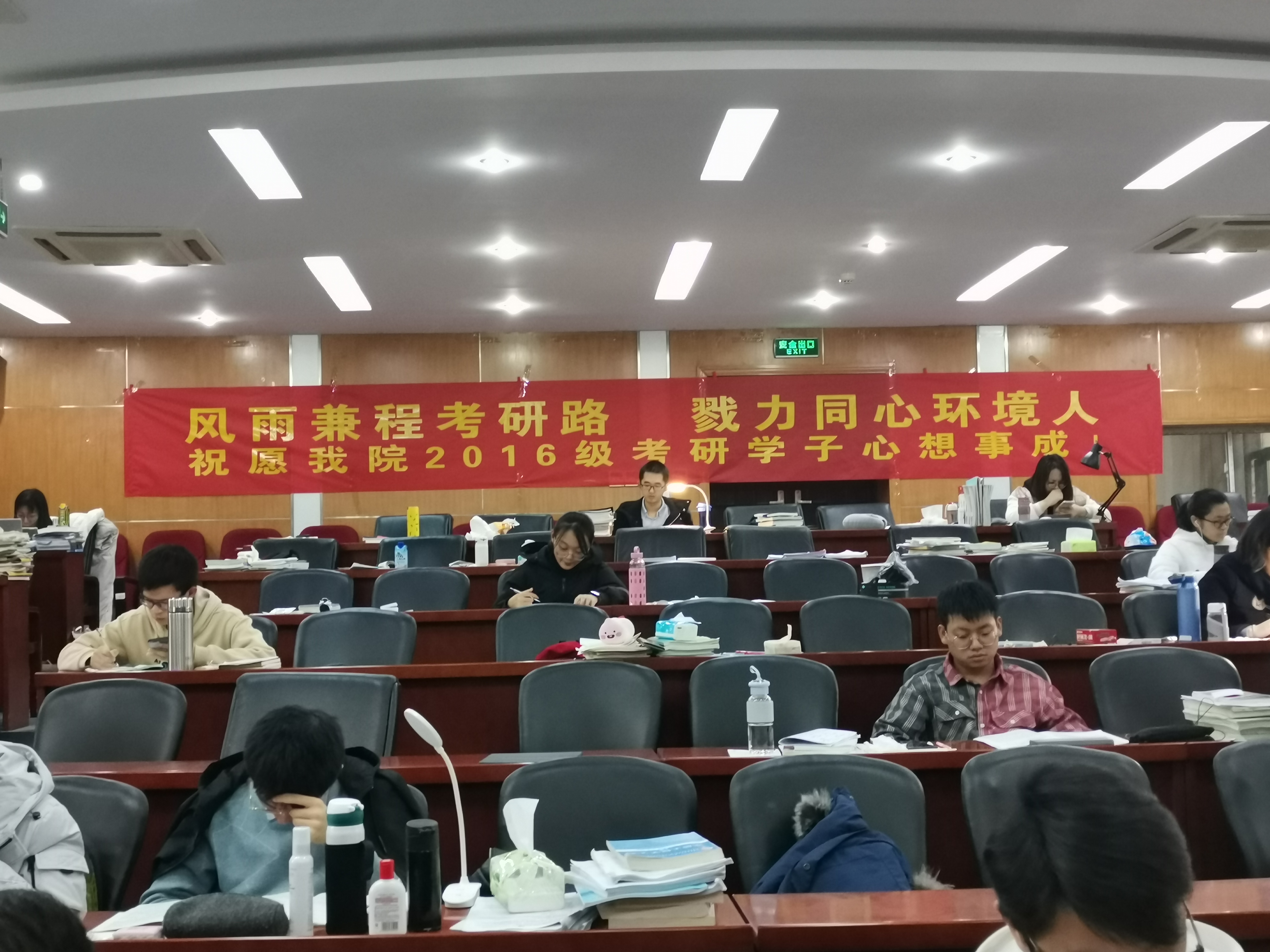 除此之外,为了让同学们能以更好的状态准备考研,8x8x 给予了十足的关怀。在学习方面,8x8x 特地向8x8x 申请了水利馆301的会议室作为8x8x 同学们的专用考研复习教室,给同学们提供了一个固定而温暖的学习空间,为同学的复习生活提供了极大的便利。在生活方面,8x8x 在快要来临之际举办了考研动员大会,鼓舞考研同学的士气,缓解大家的紧张与压力,让同学尽量以最佳的心态复习应试,同时也为学生的复习计划提供了参考经验。8x8x 还精心订制了条幅展示于考研复习教室的前后,让大家在学习之余能够感受到8x8x 老师和同学们的鼓励,希望同学能够心想事成、不负青春、做自己的英雄!
