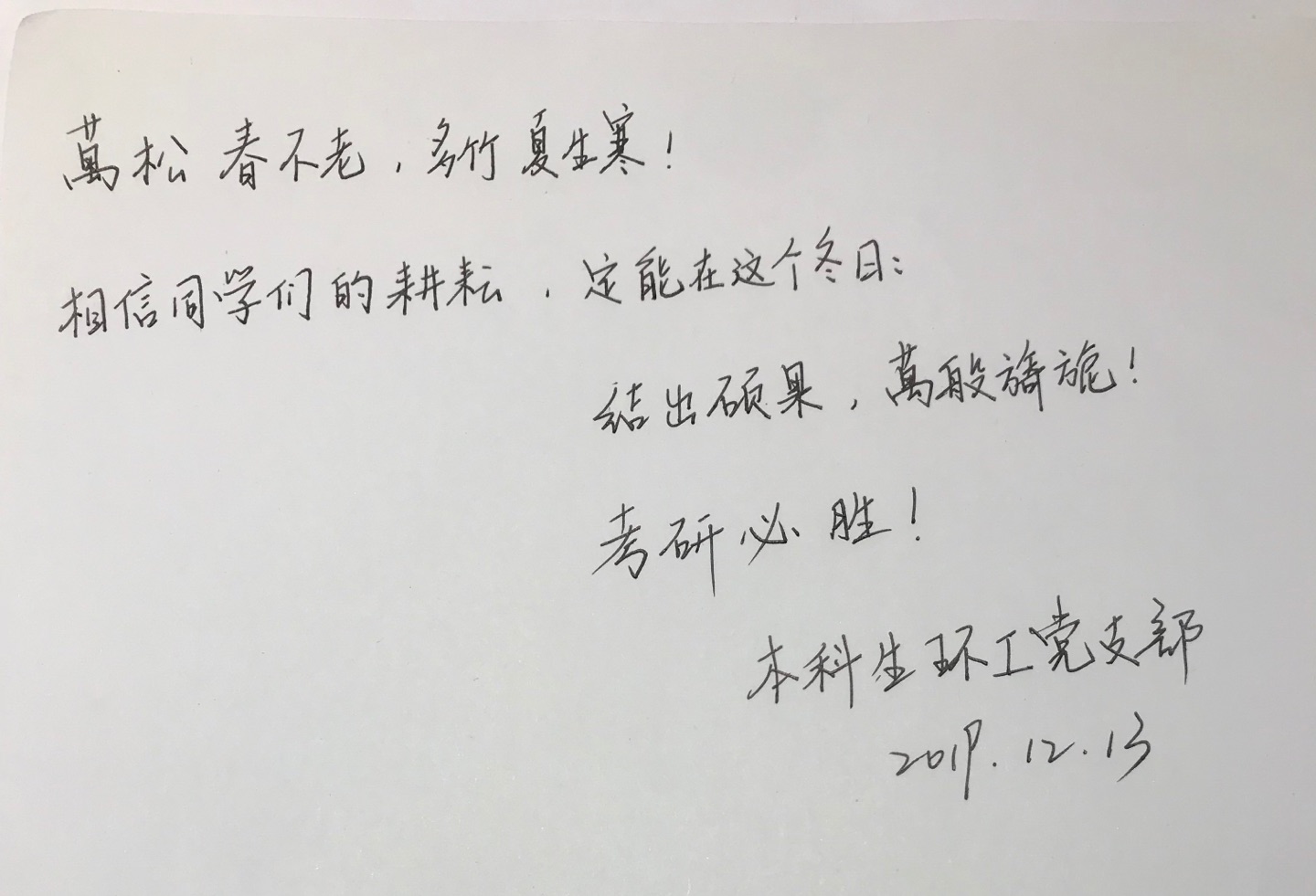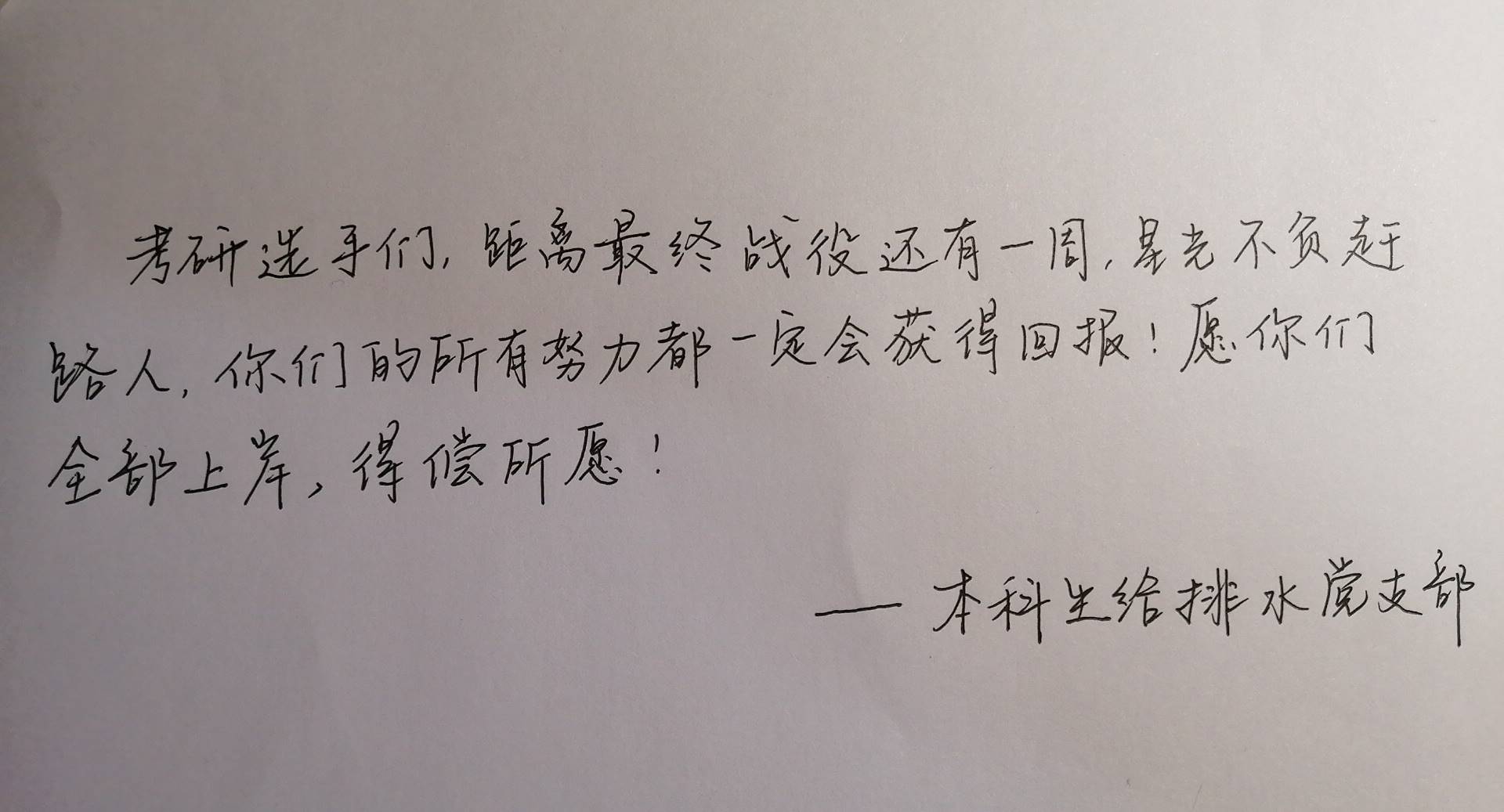 图3本科生给排水党支部给考研同学的寄语