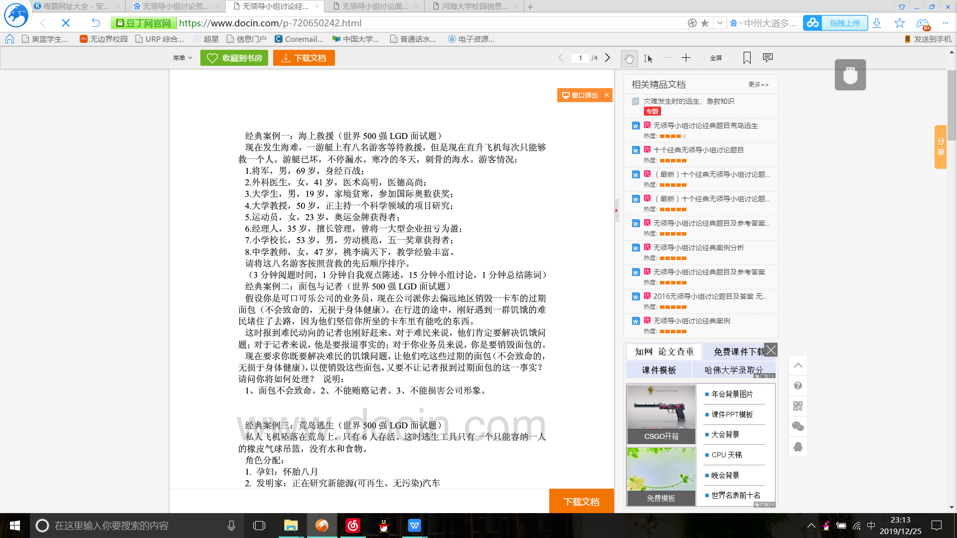 活动正式开始时,陈老师将准备好的题目发放给同学们,给了同学们5分钟的准备时间。此次采用的题目是无领导小组中最典型的题目类型——海上救援。