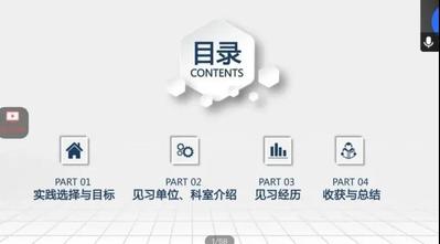2018级环境科学(中外合作)专业的徐中钰同学通过展示实践选择与目标、见习单位与科室介绍、自己的见习经验以及收获与总结四个方面,向同学们分享了实践经验与注意事项。同时,徐中钰同学建议:同学们的学时应当在大二结束前达到毕业要求,为在高年级准备其他事务腾出时间。并且,同学们应该尽早总结出学习经验,为以后的需要打好基础。