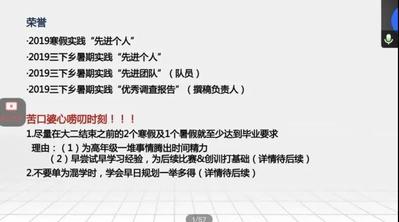 本次会议通过2018级同学实践经历及经验的分享,给同学们的暑期实践指明了方向。希望同学们在即将开展的暑期社会实践中勇于付出、落到实处,做责任担当的体现者和践行者,通过社会实践活动在锻炼自身的同时为社会做出一份贡献。